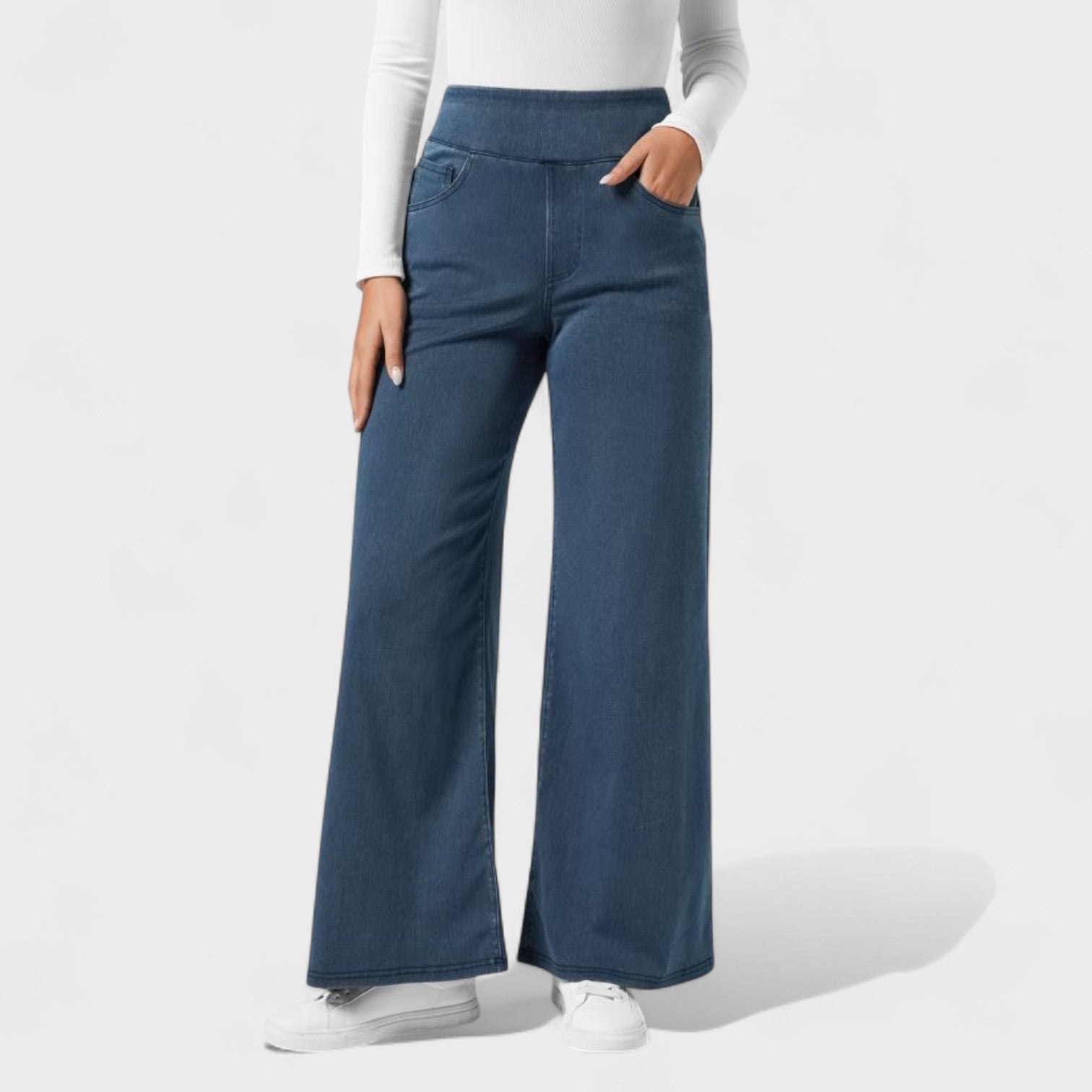 Otkrijte savršenu ravnotežu između udobnosti i elegancije s hlačama od traperica Clara. Njihov dizajn širokih nogavica izdužuje siluetu bez žrtvovanja udobnosti, idealno za aktivne žene koje žele izgledati dobro svaki dan.