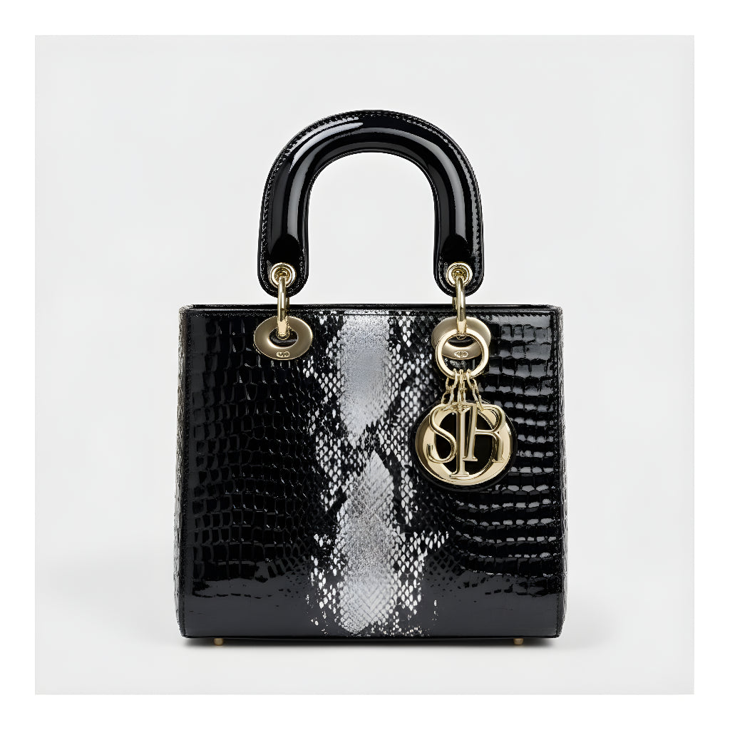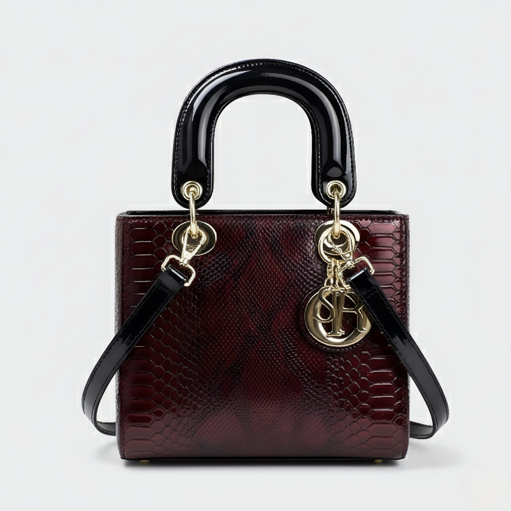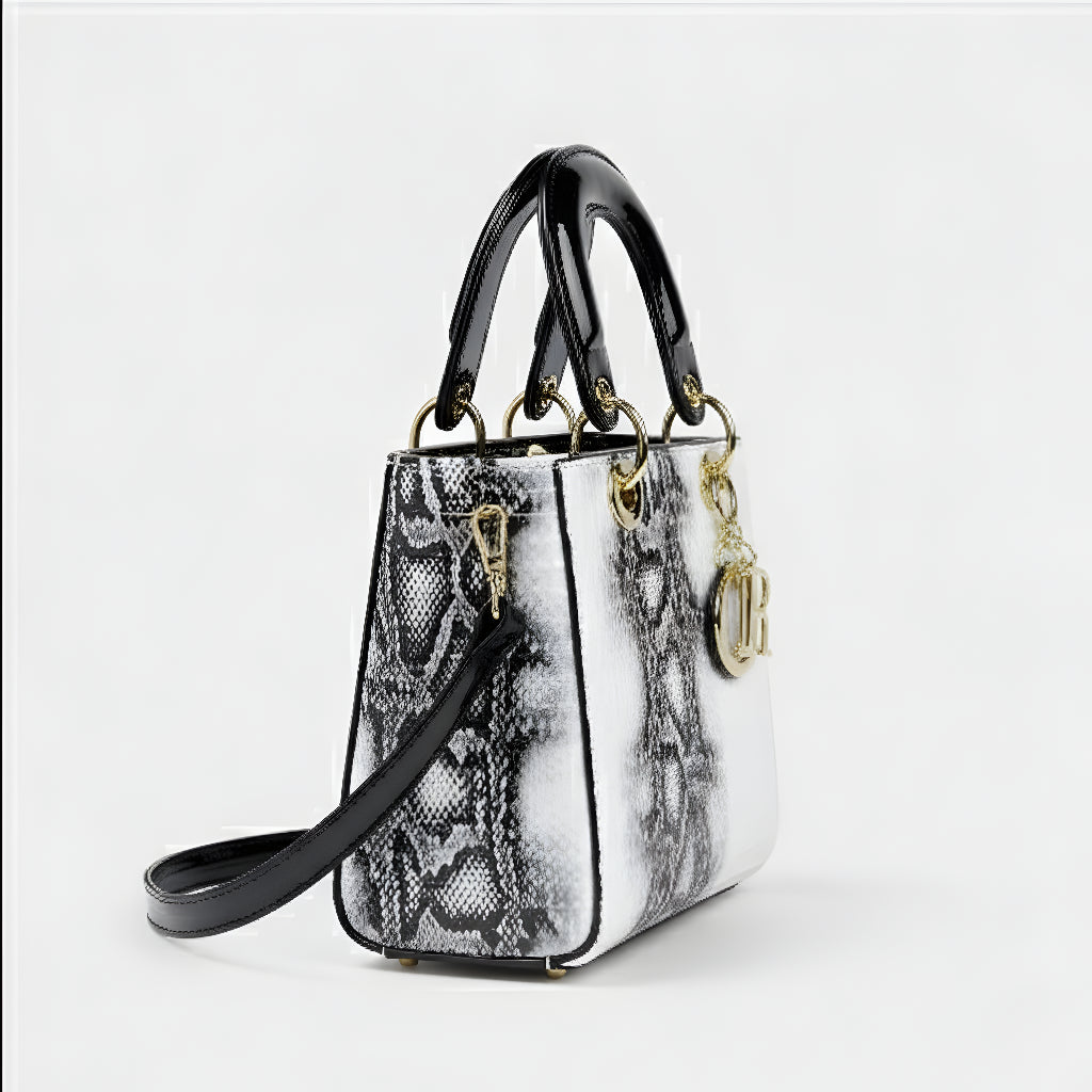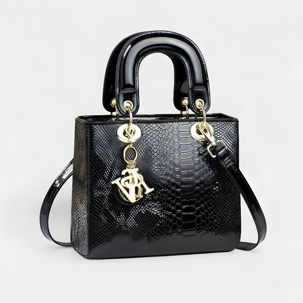 Sa sofisticiranim završetkom u životinjskoj teksturi i metalnim dijelovima visokog sjaja, ova torba je definicija profinjenosti. Strukturirana, s dvostrukim ručkama i dugom uklonjivom trakom, nudi svestranost koja odgovara od formalnih događaja do ležernih trenutaka sa stilom. Aksesor koji trenutno podiže svaku kombinaciju, donoseći šarm i autoritet.