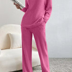 Ovaj elegantni rebrasto pleteni set spaja vrhunsku udobnost s modernim, profinjenim izgledom.