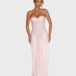 Zavodljiva. Sofisticirana. Nezaboravna. Selina Maxi haljina spaja senzualnu ženstvenost s luksuznom večernjom odjećom. Korzet s blistavim aplikacijama stvara zadivljujuću siluetu, dok lepršava suknja elegantno pada preko bokova, savršeno naglašavajući vašu figuru. Haljina koja dodaje glamur svakom pokretu - idealna za posebne prigode, elegantne događaje ili večeri kada želite biti u središtu pažnje.
